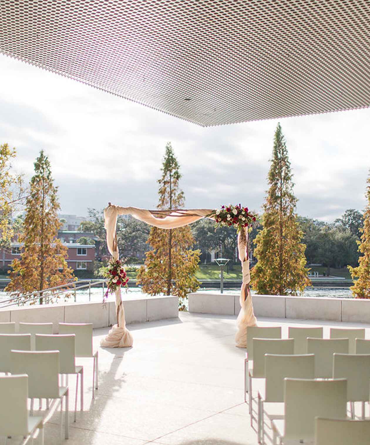 Outdoors, our scenic covered terrace allows you to host a cocktail reception or seated dinner for up to 400 guests along the Hillsborough River with views of both the iconic city skyline and the University of Tampa’s minarets. Moving indoors to the spacious atrium, your guests will enjoy the modern architectural aesthetic with floor-to-ceiling windows and contemporary art suited for your perfect event. The options are endless, whether it be a wedding, formal dinner party, corporate presentation, or cocktail reception.
